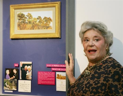 | Philippine de Rothschild devant le tableau du Princes Charles qui ornait l'étiquette du cru 2044 du château Mouton Rothschild, le 23 février 2007 à Sotheby's à New York. Photo : AFP/VNA/CVN |