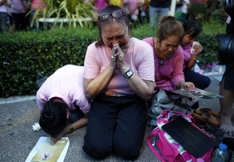 | Les Thaïlandais pleurent après l'annonce de la mort du roi Bhumibol Adulyadej, le 13 octobre à Bangkok. Photo : EPA/VNA/CVN |