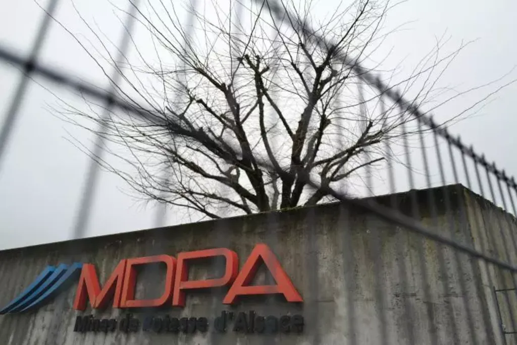 | Logo des Mines de Potasse d'Alsace (MDPA), le 6 mai 2022 à l'extérieur du site de Stocamine, à Wittelsheim. |