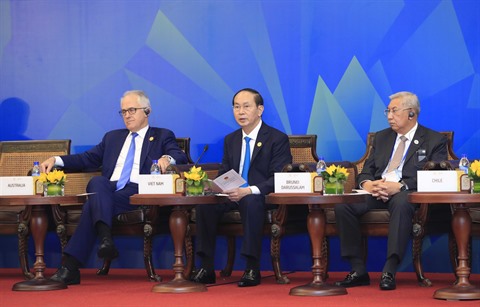 | Le président Trân Dai Quang (centre) au Dialogue informel de l'APEC et de l'ASEAN, le 10 novembre à Dà Nang. |