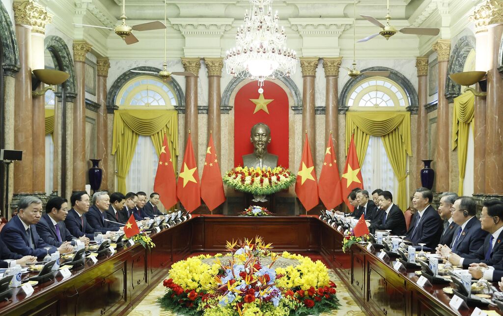 | Entretien entre le président de la République socialiste du Vietnam, Vo Van Thuong, et le secrétaire général du Comité central du Parti communiste chinois et président de la République populaire de Chine, Xi Jinping. |