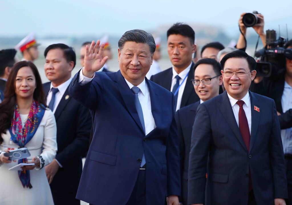 Le secrétaire général et président Xi Jinping a respectueusement remercié le secrétaire général Nguyên Phu Trong, le président Vo Van Thuong, les hauts dirigeants du Parti, de l'État du Vietnam et le peuple vietnamiens pour leur accueil respectueux, cordial et convivial. Il a respectueusement invité le secrétaire général Nguyên Phu Trong et le président Vo Van Thuong à se rendre bientôt en Chine. L’invitation a été acceptée avec joie.