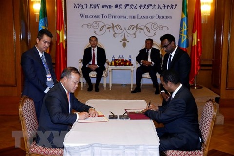 Les présidents Trân Dai Quang et Mulatu Teshome ont assisté à la signature de plusieurs conventions de coopération, dont un accord sur l’exemption de visa pour les titulaires des passeports diplomatiques et de services, et un mémorandum sur l’encouragement des investissements. Ils ont convenu de poursuivre les discussions afin de parvenir à la signature des accords concernant l’encouragement et la protection réciproque des investissements, la non double taxation et le commerce bilatéral.