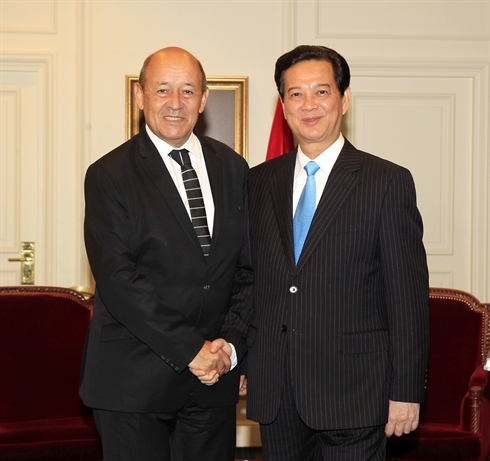 | Le Premier ministre Nguyên Tân Dung (droite) et le ministre français de la Defense, Le Drain, le 24 septembre à Paris. |