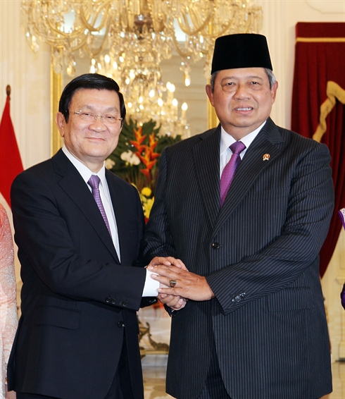 | Le président vietnamien Truong Tân Sang et son homologue indonésien, M. Susilo Bambang Yudhoyono. |