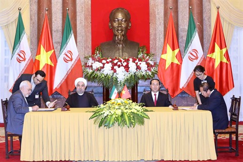 Le président iranien Hassan Rohani a eu un entretien avec le président Trân Dai Quang et rencontré le secrétaire général du Parti communiste vietnamien Nguyên Phu Trong et le Premier ministre Nguyên Xuân Phuc. Les deux parties ont rendu publique à cette occasion une Déclaration commune.