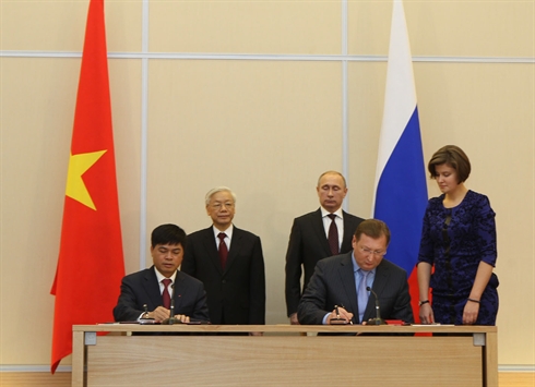 Nguyên Phu Trong et Vladimir Poutine ont appelé à poursuivre les projets actuels dans le pétrole et à en lancer de nouveaux, à faciliter l'activité des groupes et compagnies du pétrole des deux pays sur leurs territoires. Ils ont aussi affirmé le renforcement et l'élargissement de l'exploitation de pétrole sur le plateau continental du Vietnam.