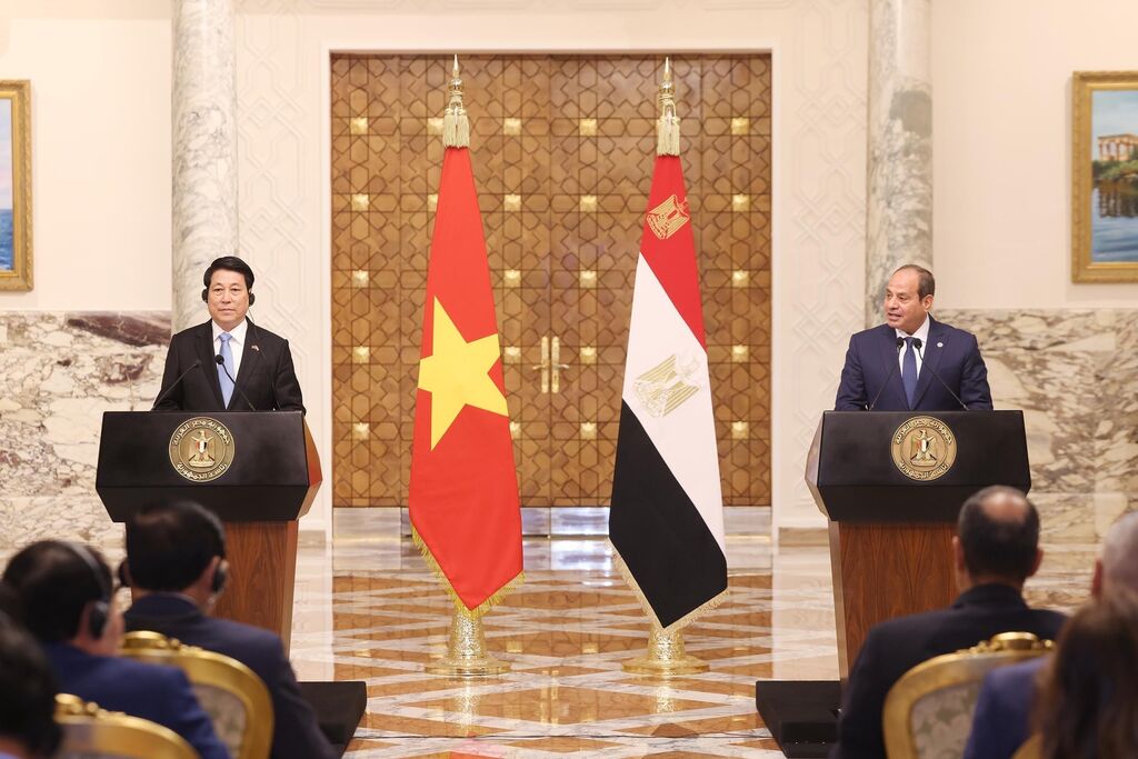 | Les présidents du Vietnam et de l’Égypte lors de leur conférence de presse conjointe. |
