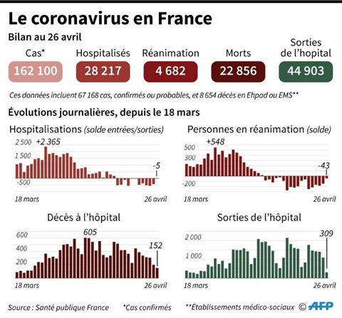 Cela fait presque six semaines que le pays est confiné pour freiner la propagation du nouveau coronavirus qui, selon le dernier bilan dimanche soir 26 avril, a fait depuis le 1er mars 22.856 morts dans le pays, dont 242 nouveaux décès en 24 heures.