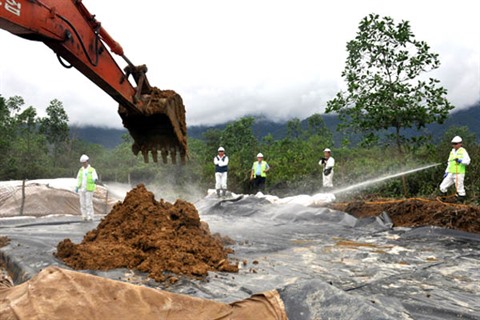 | La décontamination de la dioxine à l'aéroport A Sho, province centrale de Thua Thiên-Huê. |