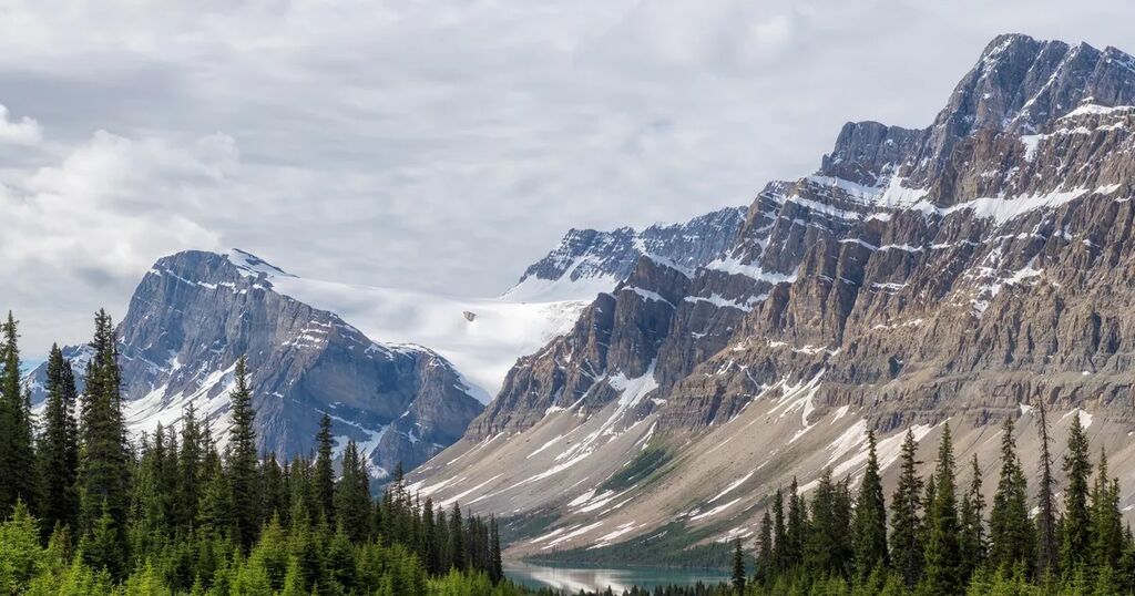 | Vue du glacier Crowfoot dans le parc national Banff, au Canada. |