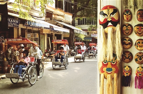| Des cyclo-pousses dans le Vieux quartier de Hanoi. |