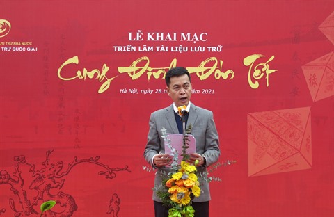 | Le directeur du Département d'État de la gestion des archives, Dang Thanh Tùng, lors de la cérémonie inaugurale, le 28 janvier à Hanoï. |