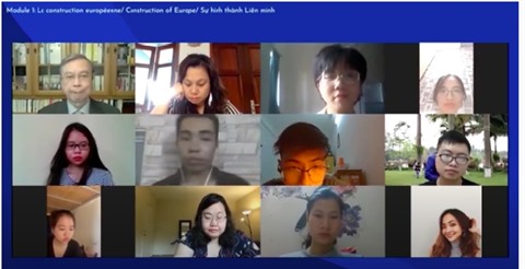 | Les étudiants de l’Université de Hanoï participent au cours en ligne intitulé "Comprendre les connaissances générales sur l'UE" organisé par la délégation de l’Union européenne au Vietnam en juillet. |