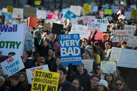 | Manifestation contre le décret migratoire signé par le président Donald Trump, le 4 février à Washington. |