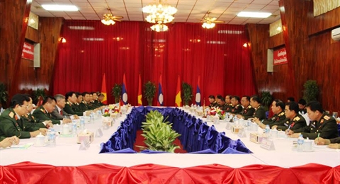 La délégation du ministère vietnamien de la Défense, dirigée par son ministre Ngô Xuân Lich, et celle du Laos, dirigée par son ministre Chansamone Chanyalath, ont eu un entretien.