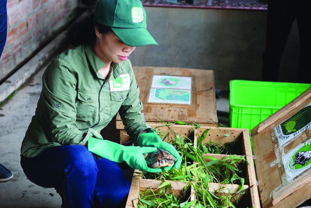 | Nguyên Thu Thuy en mission de sauvetage des tortues à Hai Duong en 2023. |