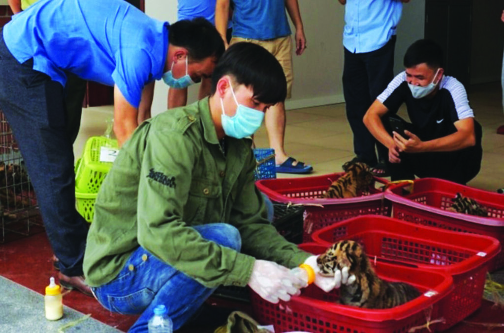 | Les sauveteurs ont secouru à temps des tigreaux captu rés au Parc national de Pù Mat. |