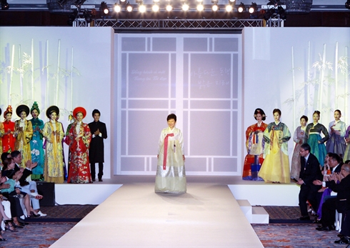 La combinaison harmonieuse entre les différentes ao dài vietnamiens et hanbok sud-coréens ont fait sensation auprès de l'assistance. Trente-quatre collections d'ao dai des stylistes vietnamiens Si Hoàng et Lan Huong et autant de hanbok - créées par 17 stylistes sud-coréens - ont été présentés par des mannequins des deux pays.