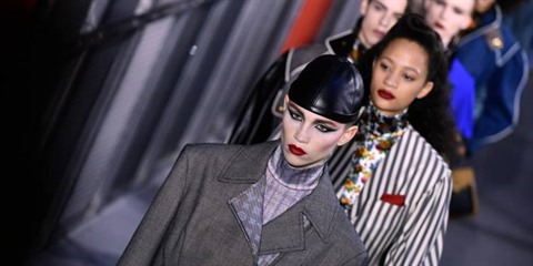 | Des mannequins présentent des créations Louis Vuitton, le 5 mars à Paris. |