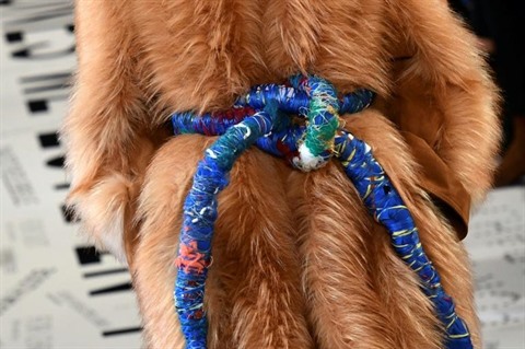L'artiste américaine Sheila Hicks a créé des accessoires en torsade pour cette collection. "Ces ornements sont des œuvres d'art portables", a souligné Stella McCartney. La top du moment Kaia Gerber, âgée de 17 ans, fille de Cindy Crawford a porté un nouveau modèle de trench kaki.