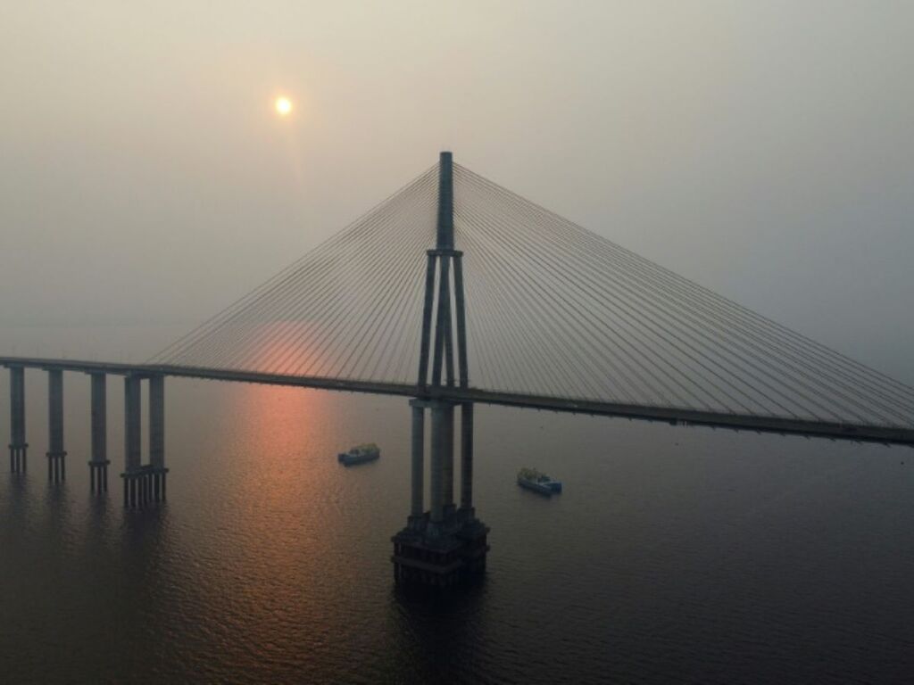 | Vue du pont du journaliste Phelippe Daou à Manaus, capitale de l'Amazonie brésilienne, envahie depuis des jours par la fumée d'incendies provoqués à des fins de déforestation, le 13 octobre. |