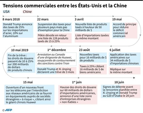 Une reprise des discussions était attendue après l'annonce la semaine dernière d'un coup de fil entre les deux présidents. Xi Jinping a fait savoir à cette occasion qu'il était prêt à s'entretenir avec Donald Trump en marge du Sommet du G20 vendredi et samedi à Osaka (Japon). L'entretien bilatéral est prévu samedi 29 juin, selon un haut responsable américain.