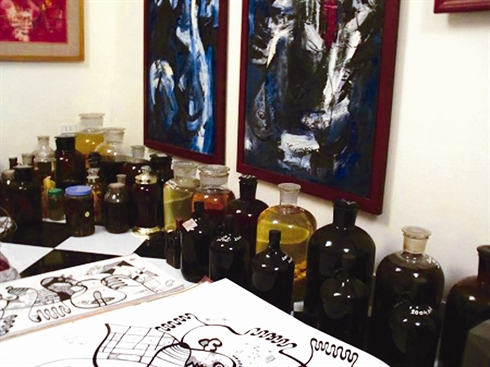 Nguyên Xuân Lân raconte qu’il a commencé à étudier les alcools de plantes médicinales et fabriqué son premier flacon en 1994. Peintre, il accueille souvent des amis chez lui pour contempler ses œuvres, et le faire avec un verre d’un breuvage original apporte un plus indéniable. Dix-neuf ans plus tard, son salon n’est plus en mesure de stocker toute sa collection. Il a donc aménagé sa propre cave dans laquelle reposent des centaines de bouteilles, flasques et autres jarres, de toute taille, essentiellement en verre et en céramique. «Ces alcools ne peuvent être dégustés qu’au minimum un an après leur fabrication et leur stockage sous terre», informe M. Lân.
