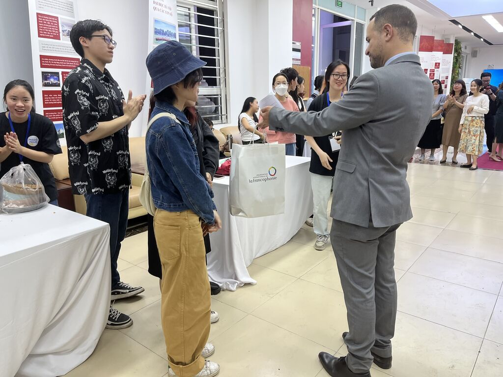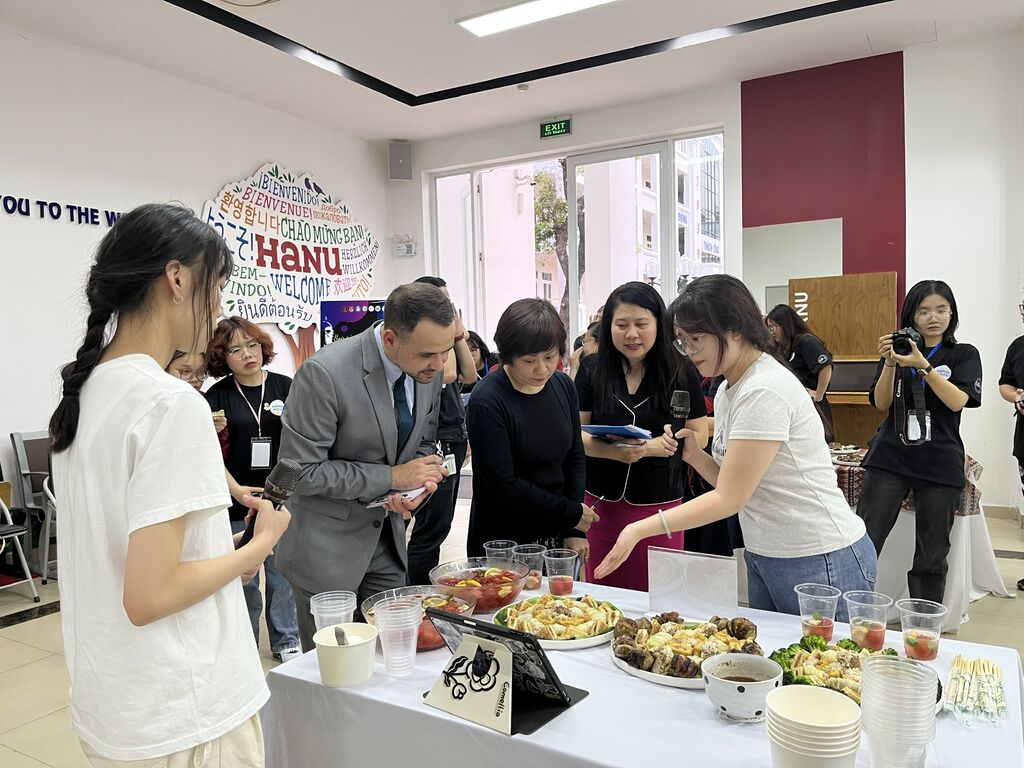 Le concours de gastronomie est une des activités organisées dans le cadre de la Soirée des francophiles 2023 "Étincelles de joie" au Département de français de l’Université de Hanoï pour célébrer la Journée internationale de la Francophonie. Également au programme : "Destinations francophones" avec des jeux ludiques pour faire découvrir la culture des pays francophones ; le concours "Talents des francophiles" où les étudiants révèlent leurs talents à travers diverses performances : chant, danse, théâtre, humour… Et enfin trois séances de projections de films sélectionnés parmi les chefs- d’œuvres des cinémas francophones.