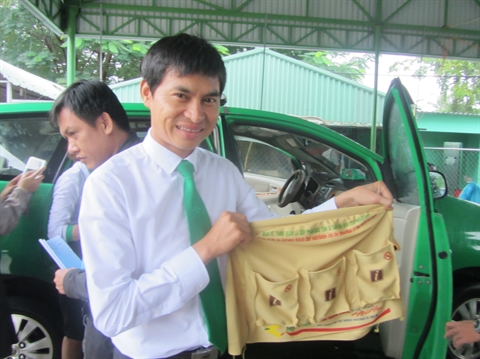 | La compagnie de taxi Mai Linh présente le produit «Diffusion de brochure d’information» sur ses taxis. Photo : BTC/CVN |