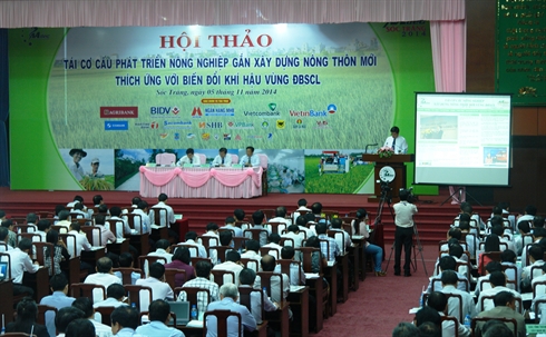 | Le colloque «Restructuration de l'agriculture - Édification d’une Nouvelle ruralité adaptée au changement climatique dans le delta du Mékong» a débuté le 5 novembre à Soc Trang. Photo : Nguyên Dat/CVN |