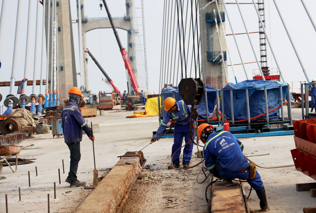 | Le chantier du pont Rach Miêu 2 nécessite un grand nombre d’ingénieurs et d’ouvriers. |
