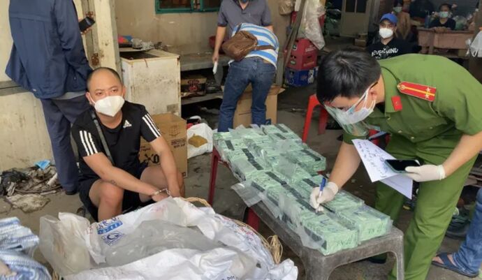 | Un suspect arrêté et les preuves saisies par la Police provinciale de Quang Ninh. |