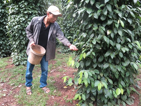 | Soin des poivriers dans la province de Bà Ria-Vung Tàu (Sud). |
