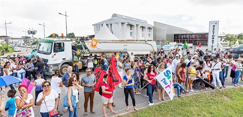 | Manifestation des syndicats de l'Éducation devant le Rectorat local, le 27 mars à Cayenne en Guyane . |