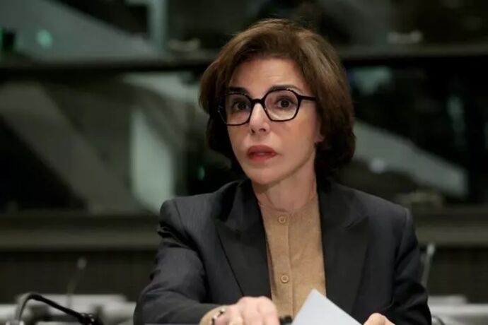 | Laurence des Cars, présidente du musée du Louvre, lors d'une audition devant la commission de la culture du Sénat à Paris. |