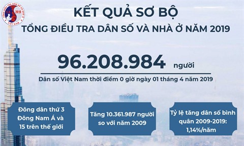 Selon le dernier recensement général de la population et de l’habitat, mené par le ministère de la Santé, la population nationale a atteint 96,2 millions d’habitants en 2019, soit une augmentation de 1,5 millions de personnes par rapport à la même période de l’année précédente. Autrement dit, le taux de croissance de la population vietnamienne s’élève à 1,56%.