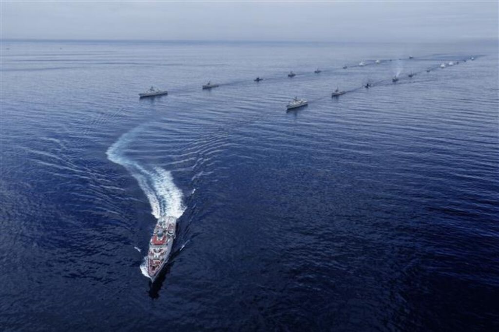 | Les navires de tête coordonnent les mouvements des unités participantes. |