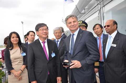 | Le Pdg de Vietnam Airlines, Pham Ngoc Minh (2e, gauche), à côté du vice-président de Boeing, Raymond Conner, le 15 juin à Paris. |