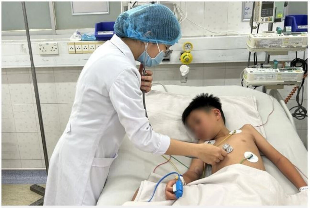 | Une médecin traite un enfant atteint de dengue sévère au Service des urgences et des soins intensifs de l'Hôpital des maladies tropicales de Hô Chi Minh-Ville. |
