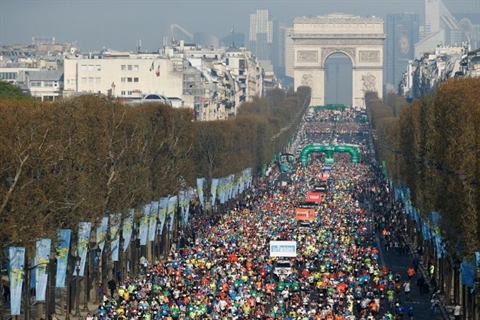| La 39e édition du marathon de Paris, le 12 avril 2015. |
