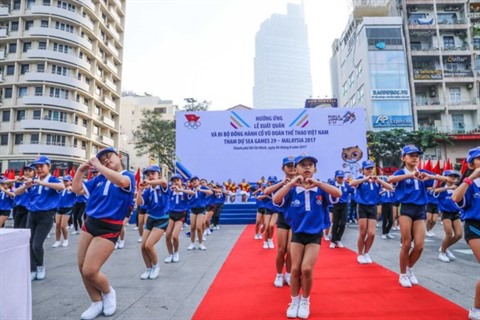 Après la traditionnelle remise d’encens et de fleurs à la statue de l’Oncle Hô, plus de 5.000 personnes ont participé à la marche dans la rue piétonne Nguyên Huê pour encourager la délégation vietnamienne.