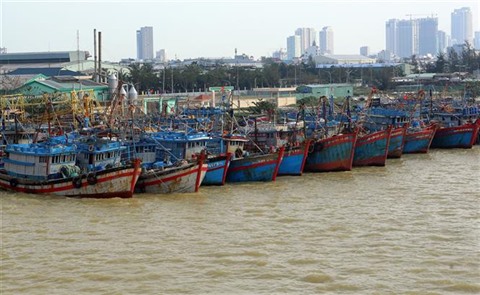 | Des navires dans un abri sûr à Dà Nang (Centre). |