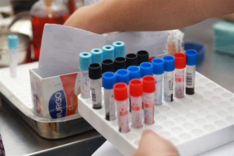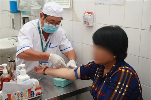 | Une femme suspecte subit une prise de sang à l’hôpital des maladies tropicales de Hô Chi Minh-Ville |
