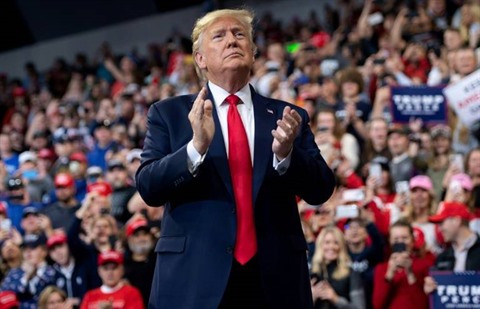 | Le président américain Donald Trump s'exprime lors d'un meeting de campagne depuis Des Moines, dans l'Iowa, le 30 janvier. |
