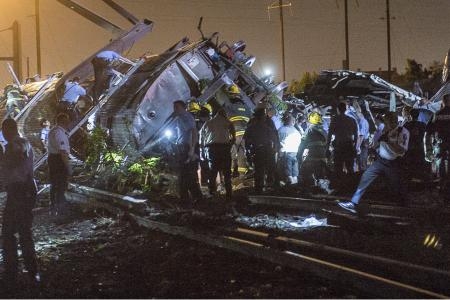 | Sur le lieu du déraillement d'un train à Philadelphie (côte est des États-Unis). |
