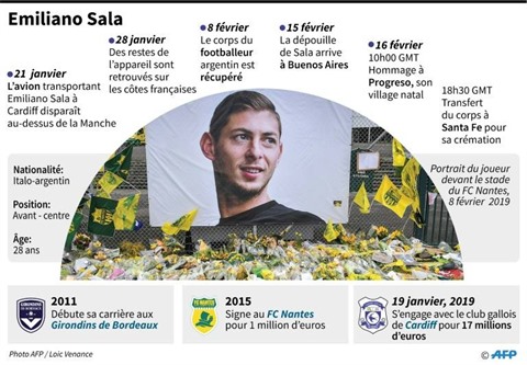 Depuis que le petit avion privé qui transportait le joueur de 28 ans entre Nantes et Cardiff a disparu le 21 janvier, le village de 3.000 habitants retient sa respiration, ses habitants s'excusent parfois de rire. Extirpé de l'épave, avant d'être identifié, le corps de Sala a été rapatrié en Argentine vendredi. La dépouille du pilote n'a toujours pas été retrouvée.