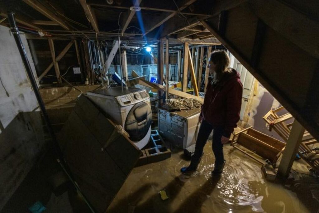 | Une habitante de Felton, en Californie, dans sa cave inondée le 14 janvier. Photo : AFP/VNA/CVN |