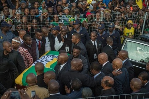 Escorté par des motards, le cercueil de "Mama Winnie", recouvert du drapeau sud-africain, a quitté samedi matin 14 avril son domicile de Soweto, la banlieue pauvre de Johannesburg à laquelle elle est restée fidèle toute sa vie.
