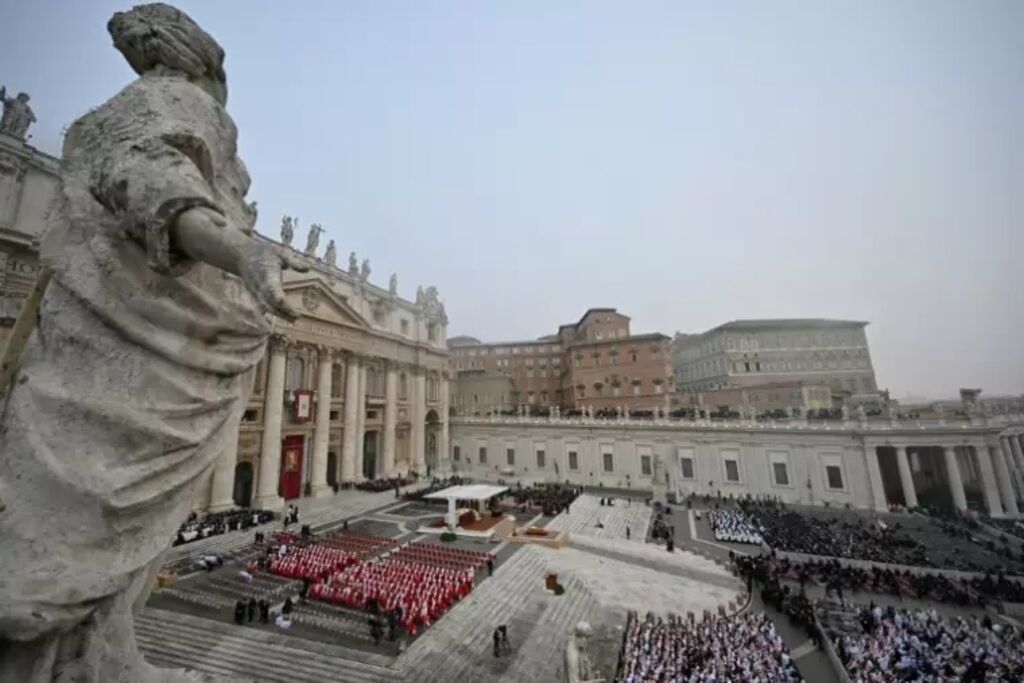 La messe, de rite latin et en plusieurs langues, était concélébrée par plus de 4.000 cardinaux, évêques et prêtres, mais son caractère exceptionnel résidait dans la présence d'un pape aux obsèques de son prédécesseur, une première dans l'histoire récente de l'Église.